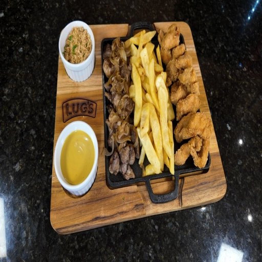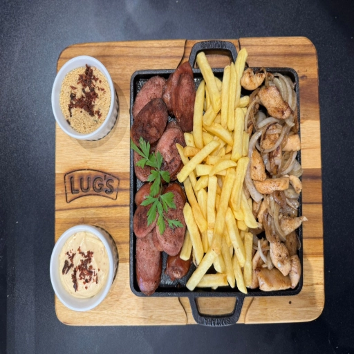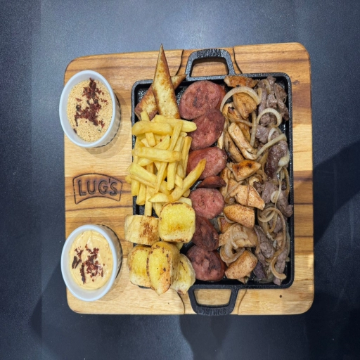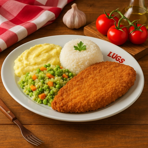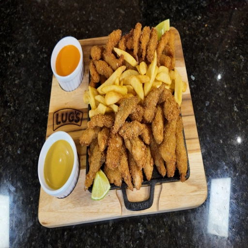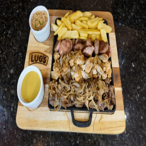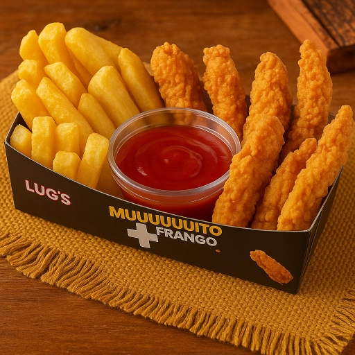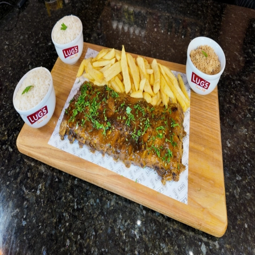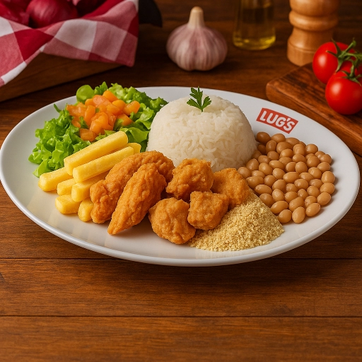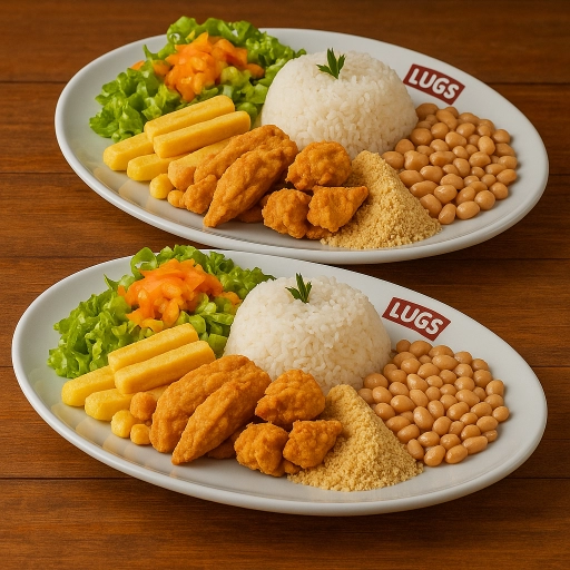 Arroz, feijão, tiras de frango steak temperada com nosso tempero especial Lugs e empanada, farofa, salada e batata frit... Ver completo